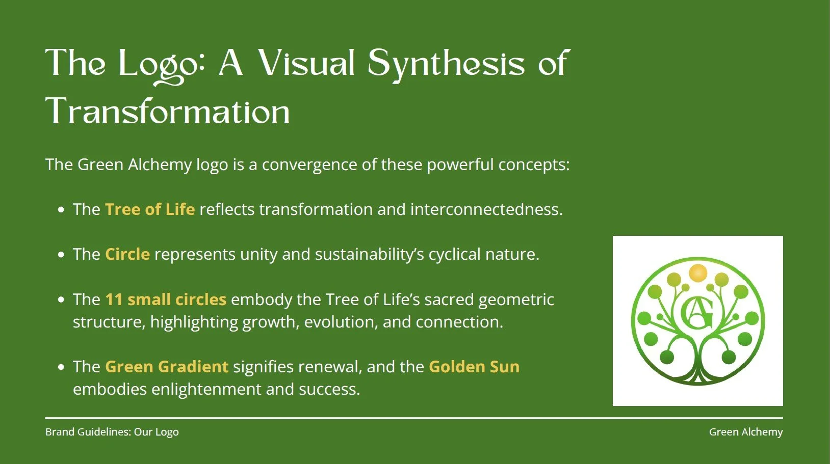 Green Alchemy is a brand inspired by transformation and harmony between nature and design. Rooted in sacred geometry- especially the 11 nodes of the Tree of Life- it reflects growth, balance, and mindful living through a clean, modern visual identity.